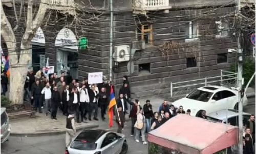 Սամվել Կարապետյանի աջակիցները Ուժեղ Հայաստան բացականչելով գնում են հանրահավաք