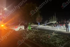 Խոշոր վթար Երևանում, «Mercedes»-ը տապալել է էլեկտրասյունը և հայտնվել կանաչ գազոն...