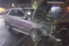 Mercedes-ը Սախարովի հրապարակում բախվել է արձանի բազալտե եզրաքարին ու բռնկվել. sh...