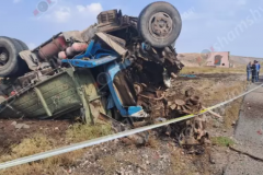 Խոշոր ավտովթար Կոտայքի մարզում. հողով և աթարով բարձված ЗИЛ բեռնատարը գլխիվայր շր...