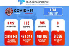 Հայաստանում հաստատվել է կորոնավիրուսով վարակվելու 115 նոր դեպք. մահացել է 8 քաղա...