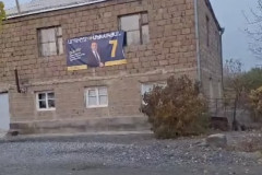 Վաղարշապատ համայնքի Լեռնամերձ բնակավայրում ՔՊ կուսակցության թեկնածուի պաստառը ըն...