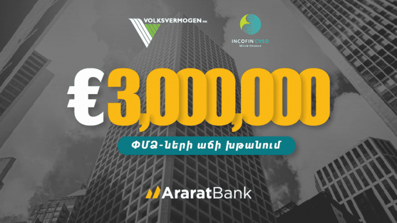 ՏեսանյութերԱրարատԲանկը 3 մլն եվրո է ներգրավել Incofin Investment Management ֆինանսական հաստատության կողմից երաշխավորված երկու հիմնադրամներից՝ 1,5 միլիոն եվրո Volksvermogen NV-ից և 1,5 միլիոն եվրո Incofin CVSO-ից՝ ապահովելով փոքր վարկերի հասանելիությունը միկրո ձեռնարկատերերի համար։