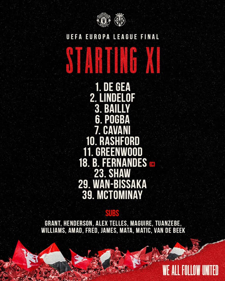 Եվրոպա լիգա եզրափակիչ՝ Վիլյառեալ-Մանչեսթեր Յունայթեդ. մեկնարկային կազմեր, ուղիղ եթեր