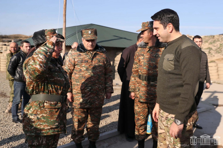 ՔաղաքականությունԴեկտեմբերի 30-ին ՀՀ ԱԺ նախագահ Ալեն Սիմոնյանն Ամանորի եւ Սուրբ Ծննդյան տոներին ընդառաջ այցելել է ՀՀ հյուսիսարեւելյան սահմանագոտի: Առաջնագծում զորամիավորման հրամանատարի ուղեկցությամբ ԱԺ նախագահը շրջայց է կատարել մարտական դիրքերում՝ նաեւ մասնակցելով նորակառույց դիրքերից մեկի բացման արարողությանը: