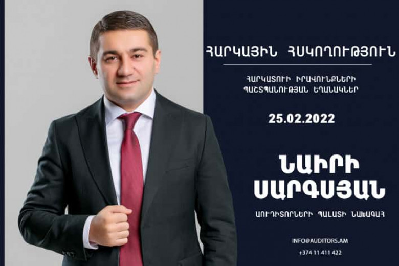 ՀասարակությունՈւշադրություն Հարգելի գործարարներ, գործադիր տնօրեններ, ֆինանսական տնօրեններ, հաշվապահներ և աուդիտորներ, Առաջին անգամ Հայաստանում Աուդիտորների պալատի նախագահ Նաիրի Սարգսյանը հանդես կգա ԲԱՑԱՌԻԿ դասախոսությամբ՝ «ՀԱՐԿԱՅԻՆ ՀՍԿՈՂՈՒԹՅՈՒՆ» թեմայով։