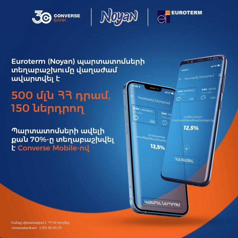 Կոնվերս Բանկի Ներդրումային դեպարտամենտի տնօրեն Գրիգորի Զաքարյանն ասում է. «Գործընկեր «Եվրոթերմ»-ի պարտատոմսերի տեղաբաշխումը նոր հաջողված փորձառություն է Կոնվերս Բանկի համար: Տեղաբաշխման վաղաժամկետ ավարտը վկայում է պարտքային արժեթղթերի մասով ՀՀ ֆինանսական շուկայում նկատվող պահանջարկի, ինչպես նաև Եվրոթերմ/Նոյան ապրանքանիշերի նկատմամբ վստահության մասին: