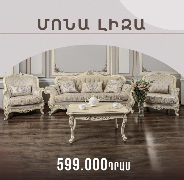 Ձեռք բերեք ՄՈՆԱ ԼԻԶԱ հյուրասենյակի հավաքածուն՝ 599.000 դրամով:
