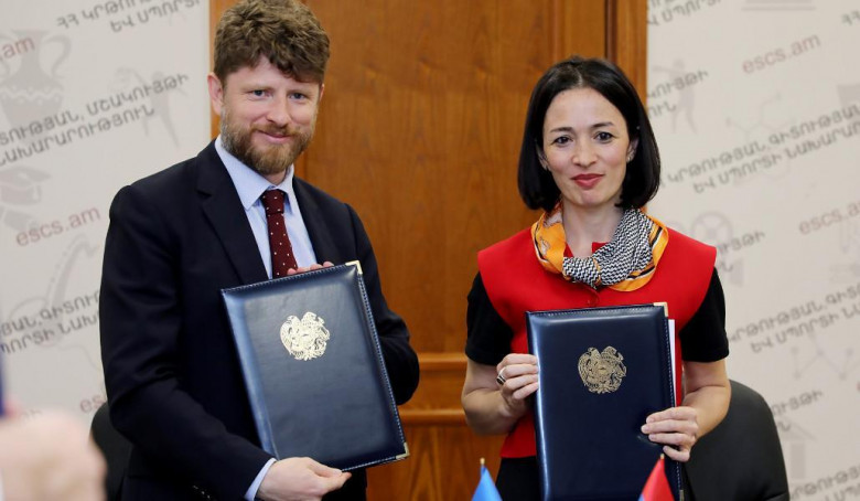 ԿԳՄՍՆ-ից NEWS.am-ին հայտնում են, որ փաստաթղթերը ստորագրել են ԿԳՄՍ նախարար Ժաննա Անդրեասյանն ու ՀՀ-ում Ֆրանսիայի Հանրապետության արտակարգ և լիազոր դեսպան Օլիվիե Դըկոտինյին: