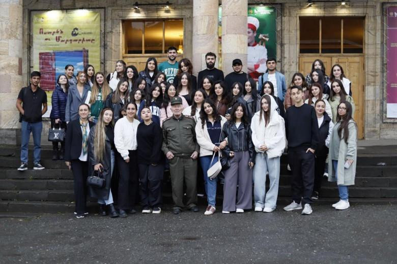 Նրանք ոչ միայն դիտել են ներկայացումը, այլև շատ հետաքրքիր հանդիպում ունեցել Հայրենական մեծ պատերազմի վետերան Վլադիմիր Ռոմանովիչ Ռապացկու հետ՝ բազմաթիվ հարցեր տալով նրան, ինչը ցույց է տալիս հայ երիտասարդների մեծ հարգանքը պատերազմի հերոսների նկատմամբ։