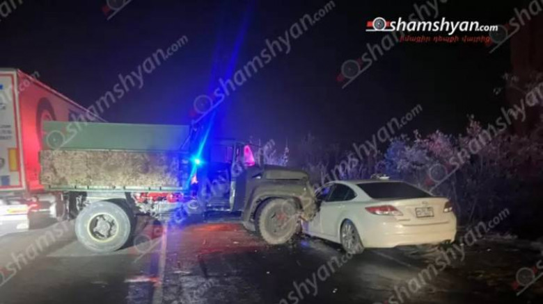 Երեկ՝ նոյեմբերի 11-ին, խոշոր ավտովթար է տեղի ունեցել Արագածոտնի մարզում։ Ժամը 20։10-ի սահմաններում Երևան-Գյումրի M1 ավտոճանապարհի 37 կմ հատվածում՝ Ուջան գյուղի վարչական տարածքում, բախվել են «Mazda» մակնիշի ավտոմեքենան և «ЗИЛ 130» մակնիշի բեռնատարը։