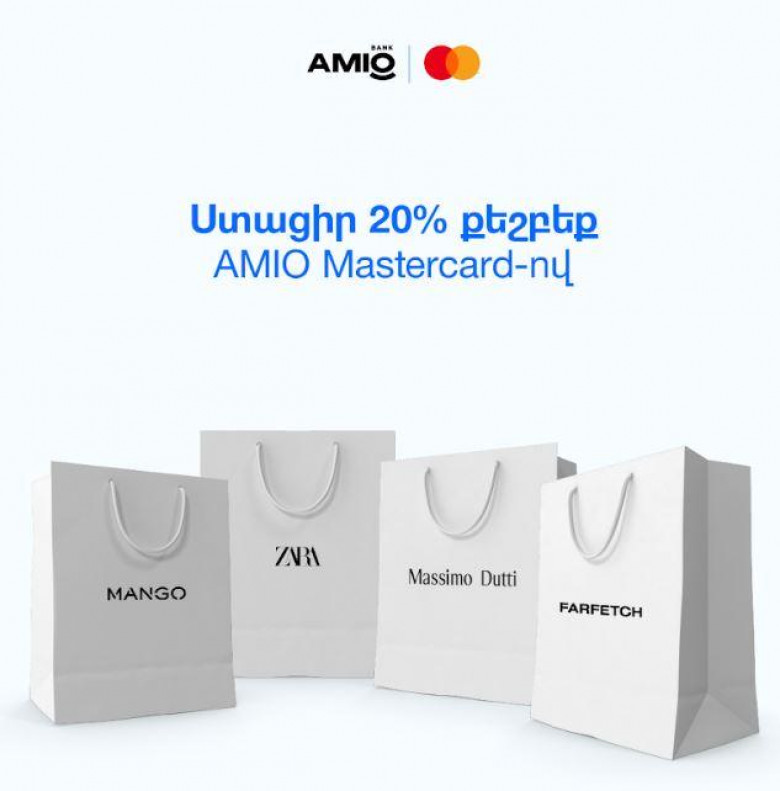 Ամիօ բանկի և Mastercard-ի մեկնարկած ակցիային մնացել է ընդամենը 1 շաբաթ։ Մինչև 15.01.2025-ը ներառյալ, կատարելով գնումներ Zara, Mango, Massimo Dutti և Farfetch խանութներից՝ Ամիօ բանկի Mastercard Digital, Gold, Platinum և World Elite տեսակի քարտերով, կստանաք 20% քեշբեք։ Հայաստանից կարող եք գնումներ կատարել օնլայն տարբերակով, իսկ արտերկրում և´ օնլայն տարբերակով, և´ նշված խանութներից: