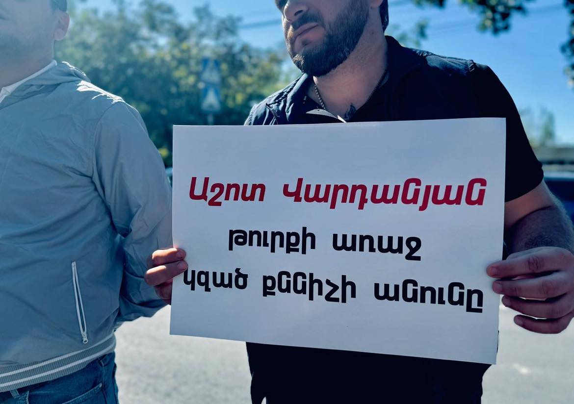 Այսօր «Համահայկական ճակատ» շարժման և կուսակցության անդամները ՀՀ զինվորական քննչական վարչության դիմաց բողոքի ակցիա իրականացրեցին և հնչեցրեցին գործ կարող քննիչների անունները, նրանք են` Արթուր Խաչատրյան, Արտակ Խաչատրյան, Աշոտ Վարդանյան: