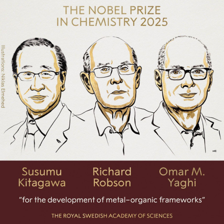 ՄշակույթՇվեդիայի գիտությունների թագավորական ակադեմիան քիմիայի բնագավառում 2025 թվականի Նոբելյան մրցանակը շնորհել է Շուշումու Կիտագավային (Ճապոնիա), Ռիչարդ Ռոբսոնին (Ավստրալիա) և Օմար Յաղիին (ԱՄՆ)՝ «մետաղաօրգանական կաղապարների մշակման համար»: «Արմենպրես»-ի փոխանցմամբ՝ այս մասին հաղորդագրություն է տարածել Նոբելյան հանձնաժողովը։