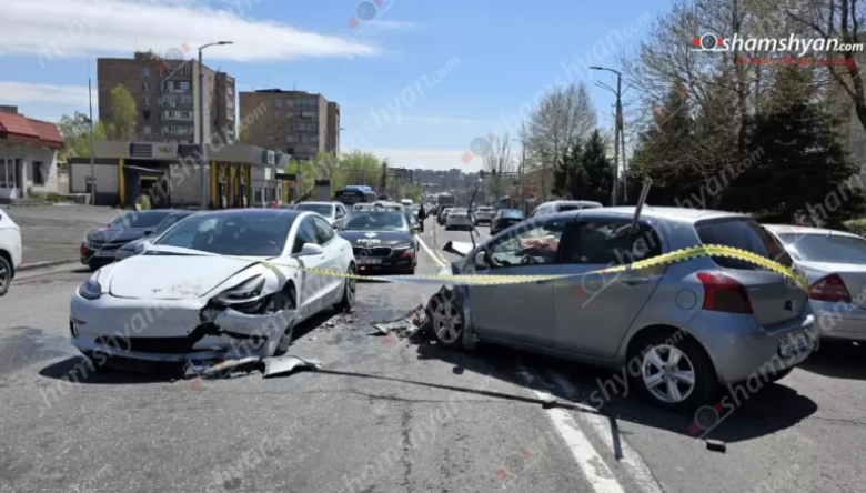 ՀասարակությունԱյսօր՝ ապրիլի 25-ին, խոշոր ավտովթար է տեղի ունեցել Երևանում։ Ժամը 12:10-ի սահմաններում Աճառյան փողոցում՝ «Հարսնաքար» ռեստորանային համալիրի մոտ, բախվել են «BMW X5», «Tesla» և «Toyota» մակնիշի ավտոմեքենաները։