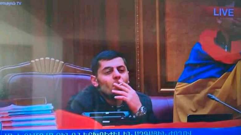 Հասարակություն«Երեկ կեսգիշերին Հրազդանի կամրջի տակ հայտնաբերվել է ցուցարարի դին, որը օրերս խորհրդարան մուտք գործելուց հետո, նստել էր Աժ նախագահ Արարատ Միրզոյանի բազկաթոռին և ծխել»։