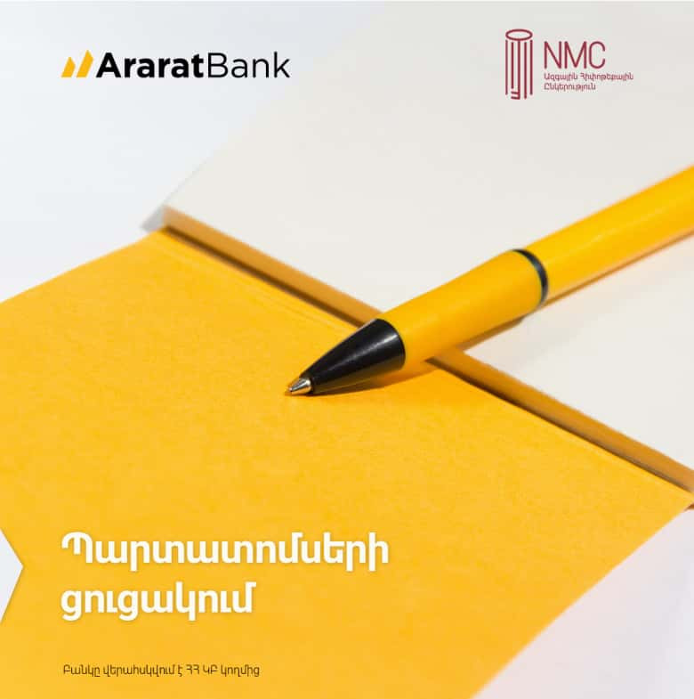 ОбществоԻնչպես նշել են բանկում, «Ազգային հիփոթեքային ընկերություն» ՎՎԿ ՓԲԸ-ի քսանմեկերորդ թողարկման անվանական արժեկտրոնային պարտատոմսերը ցուցակվելու են սույն թվականի մարտի 24-ին Հայաստանի ֆոնդային բորսայի Abond հարթակում։ 2009թ․-ի հունվարից ֆոնդային բորսայի անդամ հանդիսացող ԱՐԱՐԱՏԲԱՆԿ ԲԲ ընկերությունը հանդես կգա նշված պարտատոմսերի շուկա ստեղծողի կարգավիճակում։