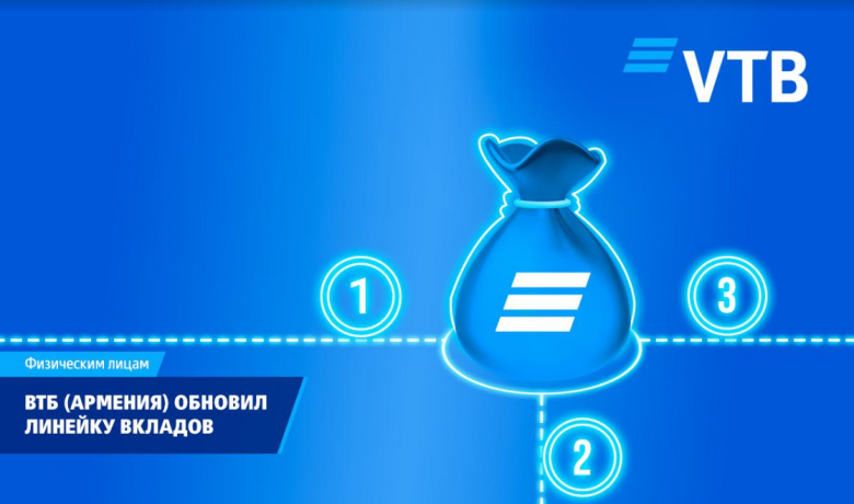 ОбществоВТБ (Армения) запустил для розничных клиентов банка три новых вклада. По каждому продукту действуют индивидуальные условия. Размещение средств доступно в драмах РА и российских рублях. Годовая доходность при оформлении вклада в национальной валюте - от 7.48% до 10.22% годовых.