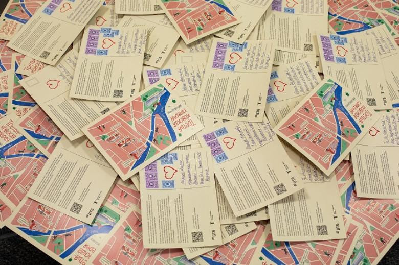 Памятная открытка создана иллюстратором Анной Васильевой, известной своими работами для детских книг и афиш театров, легким и непосредственным стилем рисунка. В 2021 году она вошла в шорт-лист крупнейшей международной премии World Illustration Awards. Учитывая, что у Третьяковской галереи довольно обширная география зданий и филиалов в столице, сюжет для открытки сложился сам собой – показать расположение нового здания относительно всех остальных филиалов на карте Москвы – а точнее, района Якиманка, где сосредоточено большинство построек. Таким образом, у посетителей первой выставки в новом здании остался на память сувенир, напоминающий о посещении не только знаковой экспозиции, но и нового здания музея, открытие которого после почти 20 лет строительства стало историческим событием в культурной жизни России.