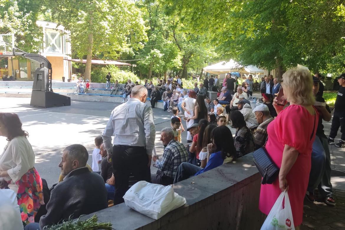 Победное шествие завершилось в детском парке имени Кирова, где с большим воодушевлением началась торжественная часть мероприятия. С проникновенной речью выступил первый секретарь ЦК КПА Ерджаник Казарян, который обратился к присутствующим: