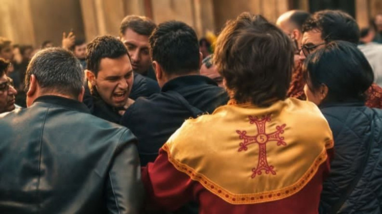 То, что происходит в эти дни с 18-летним школьником Давидом Минасяном, — это больше, чем просто преднамеренная жестокость и пытки. Напомним, речь идёт о молодом человеке, которого толкнули и ударили по лицу охранники, сопровождавшие Пашиняна, ворвавшегося в минувшее воскресенье в церковь Святой Анны. Распространяется версия, будто Давид Минасян якобы сам пытался ударить Пашиняна. Примечательно, что пропагандисты, близкие к Пашиняну, на фоне спровоцированной их «кумиром» потасовки представляют произошедшее почти как покушение.