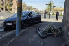 «Tesla»-ն Էրեբունի-Աթոյան խաչմերուկում կոտրել է երթևեկությունը կարգավորող լուսակ...
