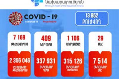 Հայաստանում հաստատվել է կորոնավիրուսով վարակվելու 409 նոր դեպք. մահացել է 30 քաղ...