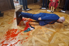 Դիմակավորված ցուցարարը կարմիր ներկով պատել և կոտրել է Բենիամին Նեթանյահուի մոմե ...