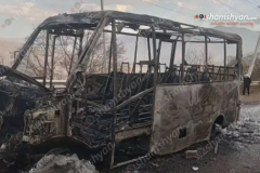 18 ուղևորները և վարորդը դուրս են եկել այրվող ГАЗель-ից, որն ամբողջությամբ վերածվ...