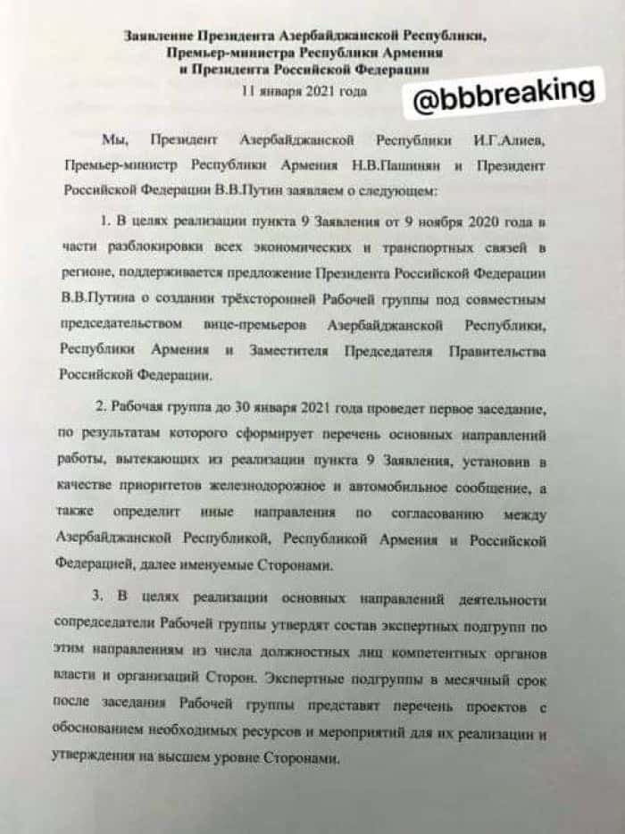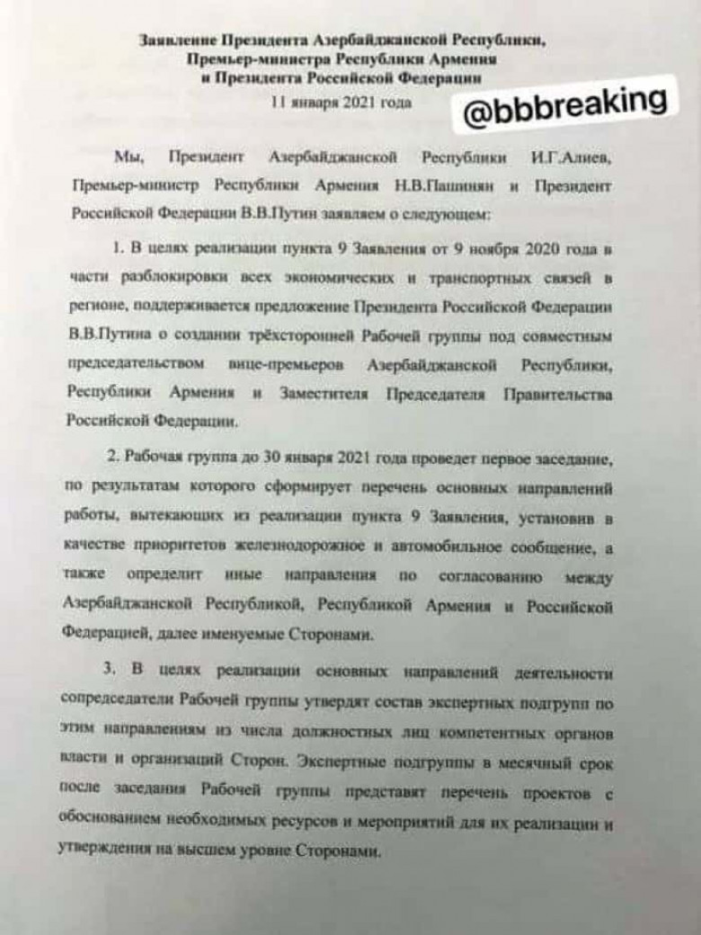 Երեք ղեկավարների ստորագրված համատեղ հայտարարությունը (լուսանկարներ)