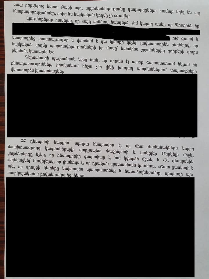«Դեսպան Միքայել Մինասյանի հրապարակած հերթական սկանդալային փաստաթուղթն է: Մեծ հավանականությամբ դիվանագիտական գաղտնի գրագրություն: