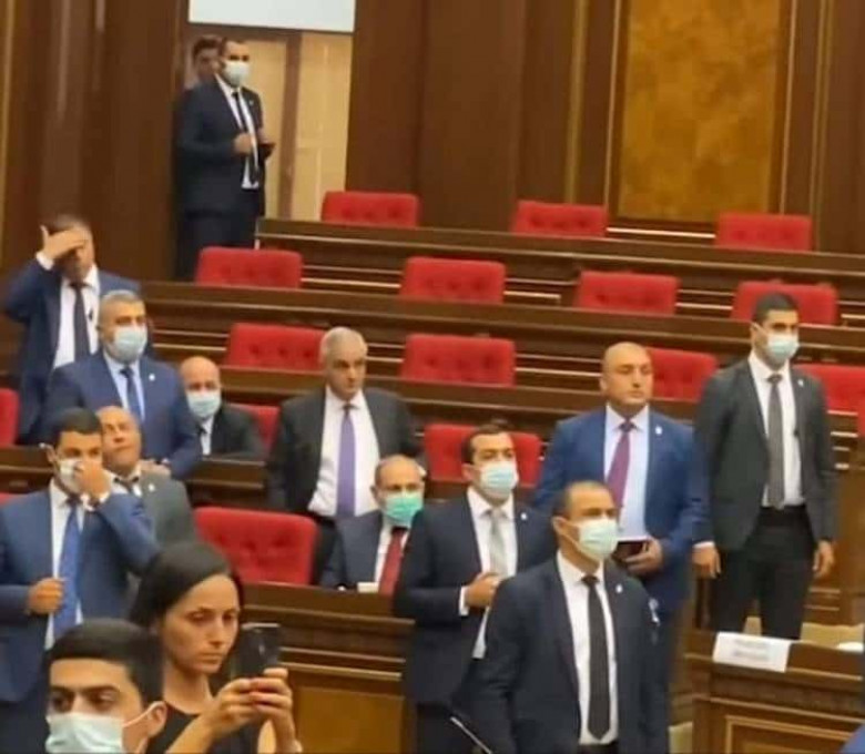ՄամուլԽորհրդարանում երեկ տեղի ունեցած ծեծկռտուքին ԱԺ նիստերի դահլիճում ներկա Նիկոլ Փաշինյանը հետեւում էր անդրդվելի տեսքով՝ թիկնապահներով շրջապատված, տեղում նստած եւ ժպիտով։ Ընդդիմադիր պատգամավորներն ասում էին, որ հատկապես երկրորդ միջադեպը տեղի է ունեցել նրա անմիջական հրահանգավորմամբ։