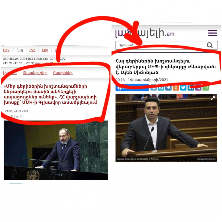 Ալտերնատիվ կարծիքՔիչ առաջ Նիկոլ Անհողը խղճուկ ելույթ ունեցավ ՄԱԿ֊ի 76֊րդ գլխավոր ասամբլեայում և հայտարարեց, որ մենք ապացույցներ ունենք, որ Ադրբեջանում խոշտանգում են մեր գերիներին...