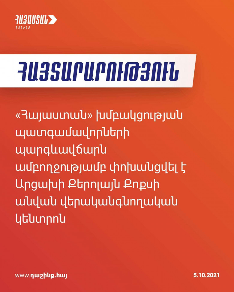 «Հայաստան» խմբակցությունը նախապես հայտարարել էր, որ պետական, քաղաքական պաշտոններ զբաղեցնողներին պարգևատրում տրամադրելու` ակնհայտ անհամաչափ և սոցիալ-տնտեսական այս բարդ պայմաններում խայտառակ պրակտիկան անընդունելի է: Հայտնել էինք, որ այս հարցով նախապատրաստվելու է Սահմանադրական դատարանին հասցեագրված դիմում: Տեղեկացնում ենք, որ այս ընթացքում քննարկվել էր նաև պատգամավորներին 250 000 դրամ փոխհատուցման վճարի տրամադրման մասին վերջերս ընդունված օրենքի խնդիրը: Արդյունքում` արդեն մշակվել է պարգևատրումների և պատգամավորներին հատկացվող 250000 ՀՀ դրամ փոխհատուցման վճարի վերաբերյալ ՍԴ դիմումը և պատգամավորների 1/5-րդի ստորագրությունների պատրաստ լինելուն պես կմուտքագրվի Սահմանադրական դատարան: Հայտնում ենք նաեւ, որ ՀՀ Անկախության 30-ամյակի կապակցությամբ տրամադրված պարգեւավճարների գումարն ամբողջությամբ՝ 10 740 000 դրամ, «Հայաստան» խմբակցությունը փոխանցել է Արցախում զինվորների համար գործող՝ Քերոլայն Քոքսի անվան վերականգնողական կենտրոն։