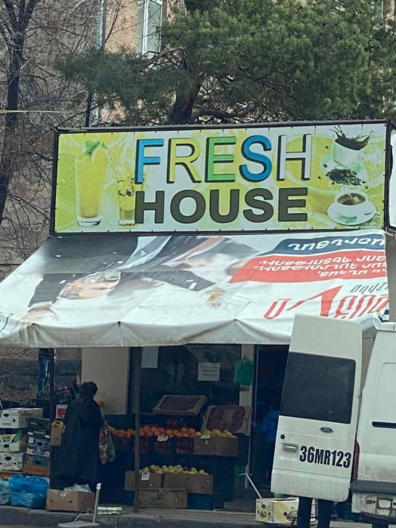 ՄամուլՆիկոլ Փաշինյանին, նրա պատկերով առարկաները, նրա հետ կապը, 2018-ից ի վեր, ով որտեղ կարողանում, օգտագործում է։ Նրա նախկին աշխատակիցներն ու ընկերներն օգտագործում են պաշտոն ու մանդատ ստանալու համար։ Օլիգարխները՝ որպես իրենց բիզնեսների «կռիշ»: Անգամ մանր գործարարներն են գտել օգտագործելու ձեւը։ Օրինակ, Չարենցավանում գործող այս միրգ-բանջարեղենի խանութի տերը Նիկոլ Փաշինյանի նկարով նախընտրական պաստառն ամենաուղիղ իմաստով է օգտագործում՝ որպես իր ապրանքի գլխին ծածկ՝ տանիք։ Վերեւում «Fresh house»-ն է, ներքեւում՝ Փաշինյանը, նրա տակ՝ մրգերն ու բանջարաբոստանային կուլտուրաները։ Իսկը՝ ՔՊ-ական իշխանության հիերարխիայի նման։