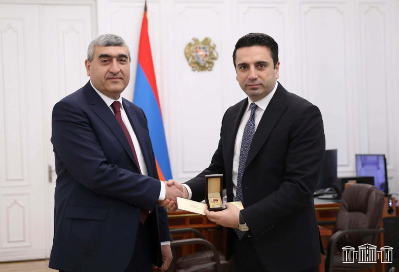 Ալեն Սիմոնյանը Ազգային ժողովի նախագահի հուշամեդալով է պարգեւատրել է Շիրակ Թորոսյանին