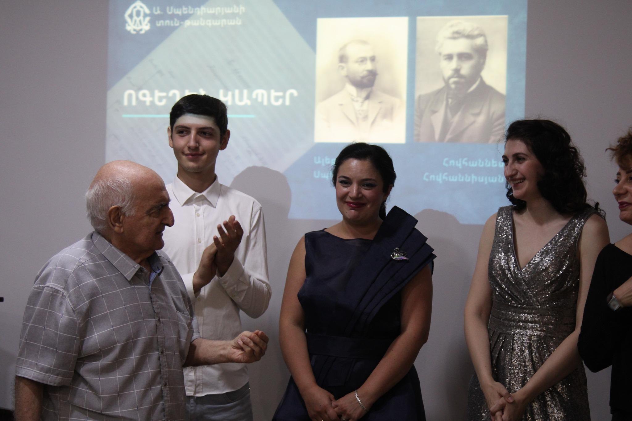 ՄշակույթՀոկտեմբերի 13-ին Ալեքսանդր Սպենդիարյանի տուն-թանգարանում տեղի ունեցավ «Հովհաննես Հովհաննիսյան և Ալեքսանդր Սպենդիարյան. ոգեղեն կապեր» խորագրով գրական-երաժշտական ցերեկույթ՝ նվիրված հայ սիմֆոնիկ երաժշտության հիմնադիր կոմպոզիտորի և հայ նորագույն շրջանի պոեզիայի հիմնադիր բանաստեղծի ստեղծագործական առնչություններին և բարեկամությանը: Միջոցառմանը բացման խոսքով ելույթ ունեցավ Ա. Սպենդիարյանի տուն-թանգարանի տնօրեն Մարինե Օթարյանը: Ցերեկույթի բանախոսը Ալեքսանդր Սպենդիարյանի տուն-թանգարանի գիտաշխատող Սիրարփի Ենգիբարյանն էր: Միջոցառմանը Հովհաննես Հովհաննիսյանի բանաստեղծություններն ասմունքեց Երևանի Շարլ Ազնավուրի անվան մշակույթի և արվեստի պետական քոլեջի ուսանող Գագիկ Խաչատրյանը: Ալեքսանդր Սպենդիարյանի, Բարսեղ Կանաչյանի և Կոմիտասի երկերից կատարեցին Ա. Սպենդիարյանի անվան օպերայի և բալետի ազգային ակադեմիական թատրոնի մեներգչուհի Նարինե Անանիկյանը, նույն թատրոնի «Երիտասարդական օպերային ծրագրի» մենակատար Աննա Բեգլարյանը՝ Կատարինե Հովսեփյանի նվագակցությամբ: Ցերեկույթի եզրափակիչ մասում Հովհաննիսյանների ընտանիքի մասին ուշագրավ հուշերով կիսվեց ճարտարապետ Անուշ Տեր-Մինասյանը: Ցերեկույթն ամփոփեց Երևանի Կոմիտասի անվան պետական կոնսերվատորիայի պրոֆեսոր, ՀՀ արվեստի վաստակավոր գործիչ Արմեն Բուդաղյանը: Միջոցառումը եզրափակվեց Ալեքսանդր Սպենդիարյանի և Հովհաննես Հովհաննիսյանի տուն-թանգարանների՝ փոխադարձ նվերների հանձնման արարողությամբ և համագործակցության նոր ծրագրերի մասին պայմանավորվածությամբ:
