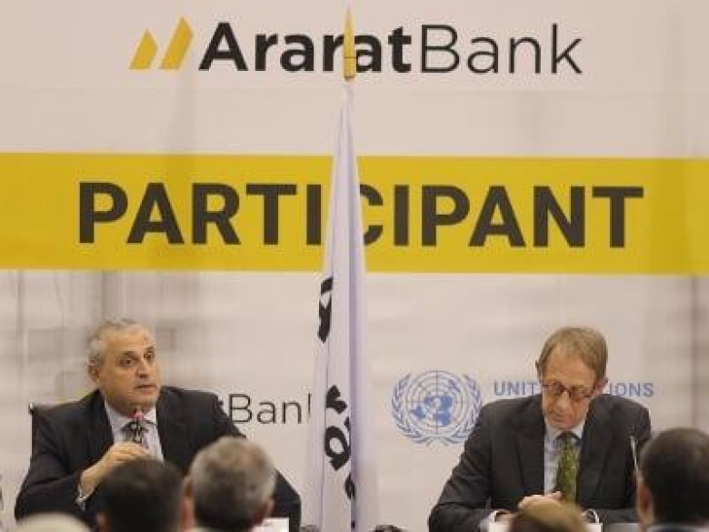 ՏնտեսությունՍույն թվականի մարտի 3-ին ԱրարատԲանկի Զարգացում մասնաճյուղի հանդիսությունների սրահում տեղի ունեցավ ԱրարատԲանկի՝ ՄԱԿ-ի «Գլոբալ պայմանագիր» (UN Global Compact) միջազգային նախաձեռնությանը միանալու մեկամյակին նվիրված միջոցառումը։
