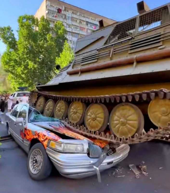 Hraparak-ը գրում է. Մի քանի օր է, ինչ համացանցում տեսանյութեր են տարածվում, որ Երևանի Խորենացի փողոցում՝ «Ոսկու աշխարհ» առևտրի կենտրոնի դիմաց, զրահամեքենան բարձրանում է մարդատար մեքենայի վրա: Ինչն էլ տարաբնույթ քննարկումների առարկա էր դարձել համացանցում: