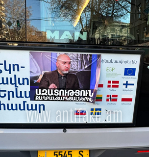 ՀասարակությունԵրևանի հասարակական տրանսպորտի վրա շարունակում են հայտնվել Նիկոլ Փաշինյանի ռեժիմի կողմից ազատությունից ապօրինի կերպով զրկված անձանց լուսանկարները։ Մասնավորապես, Երևանի ավտոբուսների վրա հայտնվել են ՀՀԿ ԳՄ անդամ Արմեն Աշոտյանի, «ՎԵՏՕ» շարժման հիմնադիր Նարեկ Մալյանի և Վանաձորի համայնքապետ Մամիկոն Ասլանյանի «քաղբանտարկյալ» գրությամբ լուսանկարները։ Լուսանկարներն արված են մայրաքաղաքի տարբեր հատվածներում։