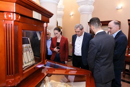 Այցի ընթացքում ղեկավար կազմին ներկայացվեց Մատենադարանի գործունեության բնույթն ու առանձնահատկությունը, վերականգնման լաբորատորիաների վերազինման անհրաժեշտությունը, վերականգնման ոլորտում միջազգային համագործակցության ընդլայնման կարևորությունը։