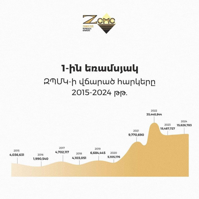 Սակայն հետաքրքիր է նաև մեկ այլ փաստ։ Նախորդ 10 տարիների նույնիսկ միայն առաջին եռամսյակի հարկային վճարումների տվյալները ցույց են տալիս, որ վերջին երեք տարում հարկային մուտքերը նախորդ տարիների համեմատ կրկնակի, որոշ դեպքերում եռակի կամ քառակի անգամ աճել են։ Թե ինչ օբյեկտիվ և սուբյեկտիվ պատճառներով է նախորդ տարիներին ԶՊՄԿ-ն զգալիորեն պակաս հարկեր վճարել, և վերջին տարիներին՝ զգալիորեն ավելացրել հարկային մուծումները՝ առանձին վերլուծության թեմա է։