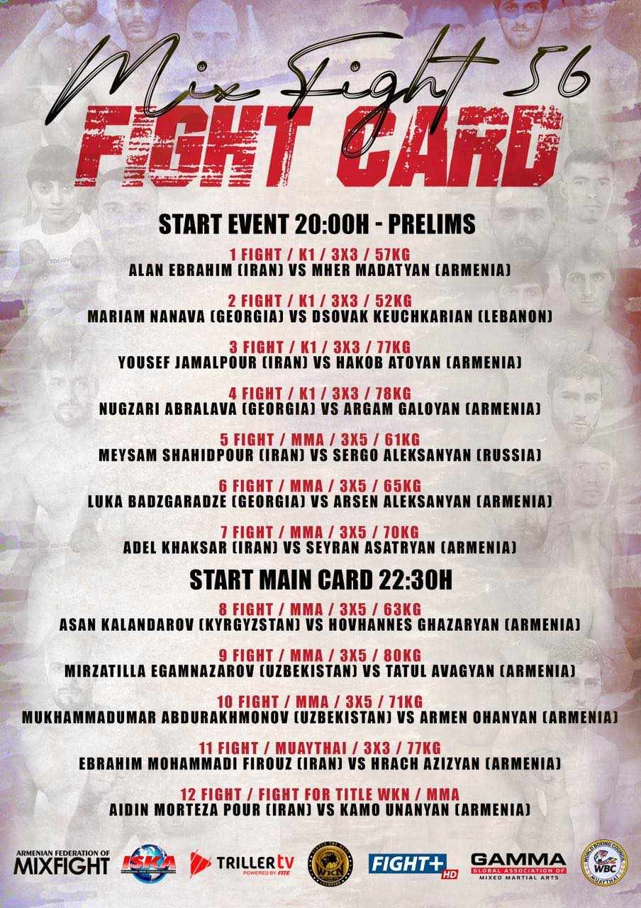 Mika մարզական համալիրում՝ հուլիսի 12-14-ը անց է կացվելու իսպանական Mix Fight կազմակերպության 56-րդ մրցաշարը