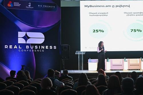 ՀասարակությունՀոկտեմբերի 18-ին և 19-ին Երևանում անցկացվում է Real Business կոնֆերանսը: Հայաստանի ամենահայտնի ընկերությունների հաջողության պատմությունններ հենց հիմնադիրներից, ոլորտային պանելային քննարկումներ և ոչ միայն: Կոնֆերանսի շրջանակում ելույթ ունեցավ Ամերիաբանկի MyBusiness թվային հարթակի ղեկավար Արփինե Հարությունյանը: Նա ներկայացրեց MyBusiness.am հարթակը, որը նախատեսված է բիզնես հաճախորդների համար: Հարթակը գործում է 2018 թ.-ից, շարունակաբար ընդլայնել է հասանելի ծառայությունների ցանկը իսկ 2021 թ.-ին արդեն ներդրվել են փաթեթային առաջարկներ: