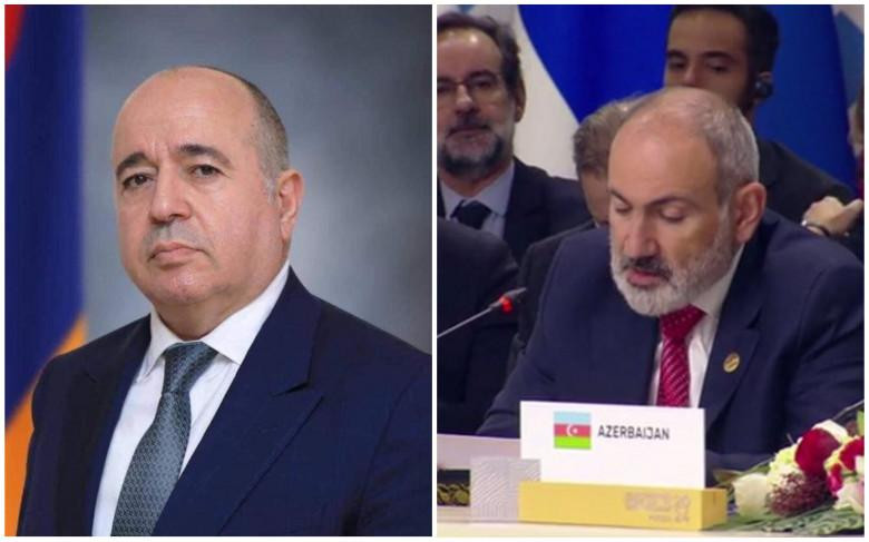 Նախօրեին ՀՀ պաշտպանության նախկին նախարար, գեներալ-մայոր Արշակ Կարապետյանի Ֆեյսբուքի էջում տեղադրվել էր համացանցում հայտնի դարձած մի լուսանկար, որում ԲՐԻԿՍ-ի գաղաթնաժողովին մասնակցող ու Իլհամ Ալիևի մոտ նստած Նիկոլ Փաշինյանի առջև երևում է «Ադրբեջան» գրությամբ ցուցանակ, ինչից հետո իշխանական քարոզչամեքենան՝ իր սատելիտներով ու լրատվամիջոցներով հանդերձ, մեծ աղմուկ բարձրացրեց «Համահայկական ճակատ» շարժման առաջնորդի շուրջ: