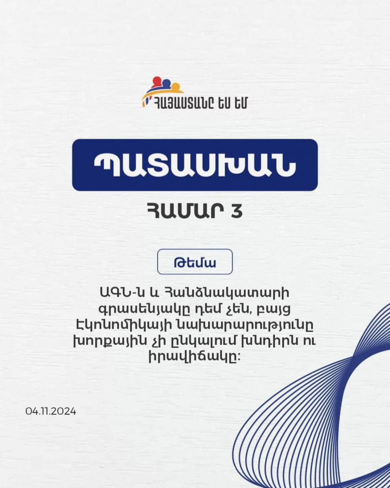 Քաղաքականություն«Հայաստանը ես եմ» նախաձեռնությունը ներկայացրել է ՀՀ պետական կառույցներից ստացած 3-րդ առաջարկ-պահանջի պատասխանը։