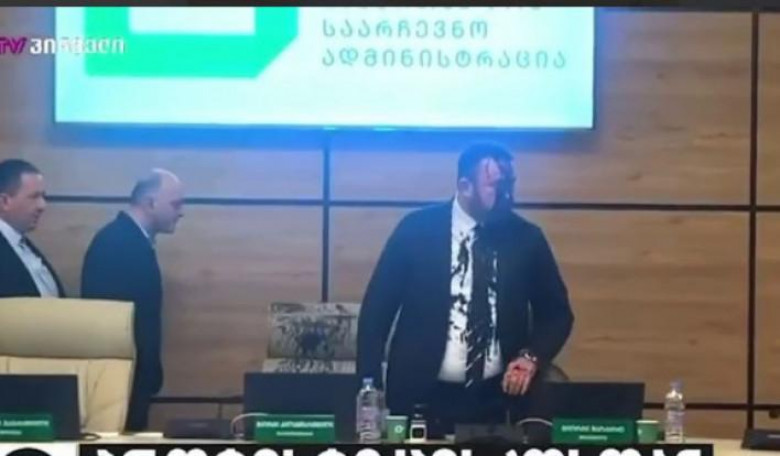 Վրաստանում ընդդիմադիր շարժման առաջնորդներից մեկը սև ներկ է լցրել ԿԸՀ ղեկավարի վրա (տեսանյութ)