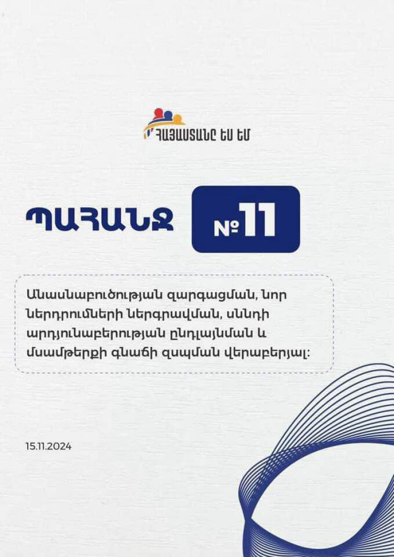 Տնտեսություն«Հայաստանը ես եմ» նախաձեռնությունը իր 11-րդ առաջարկ-պահանջն է ներկայացրել ՀՀ կառավարությանը, պատկան մարմիններին։ Առաջարկ-պահանջում ասվում է.