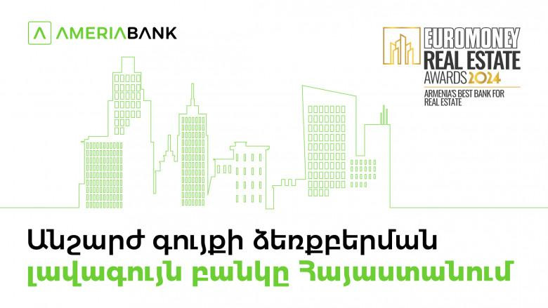 Ամերիաբանկը Euromoney ամսագրի կողմից ճանաչվել է Հայաստանի լավագույն բանկն Անշարժ գույքի ձեռքբերման ոլորտում