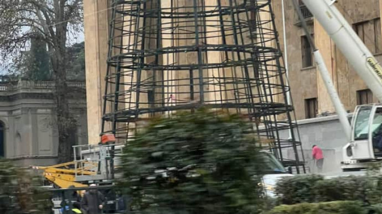 Թբիլիսիի քաղաքապետարանը ցույցերի էպիկենտրոնում սկսել է տոնածառի տեղադրումը